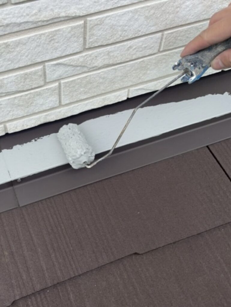 土台水切りを錆止めからの上塗り塗ったり