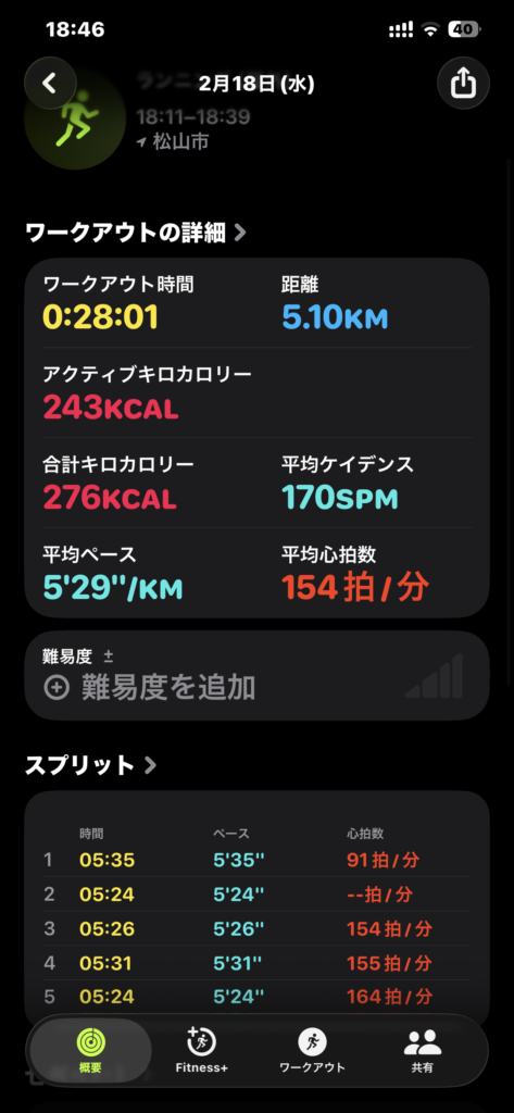 1日の締めはランニング。