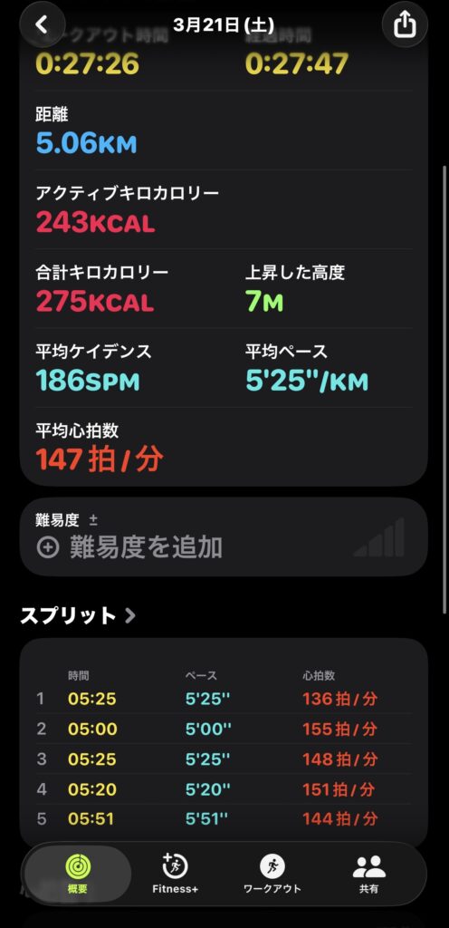 今思うと今日の心拍数で5分前半って