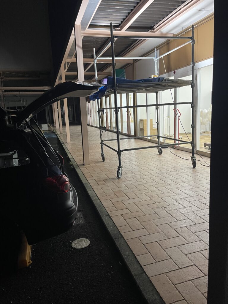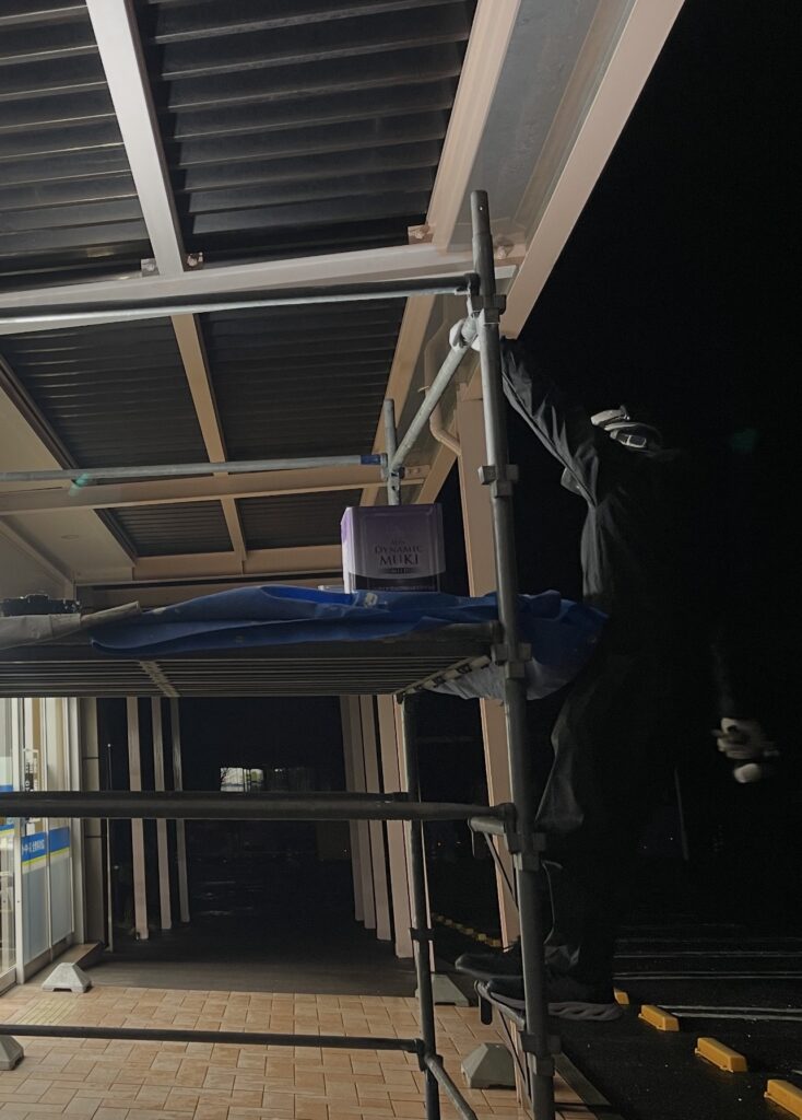 夜勤でローリングを使って鉄骨塗装