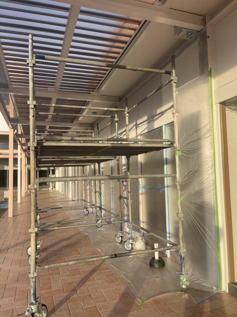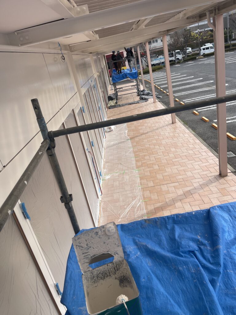 今日も大規模改修工事店舗前へ